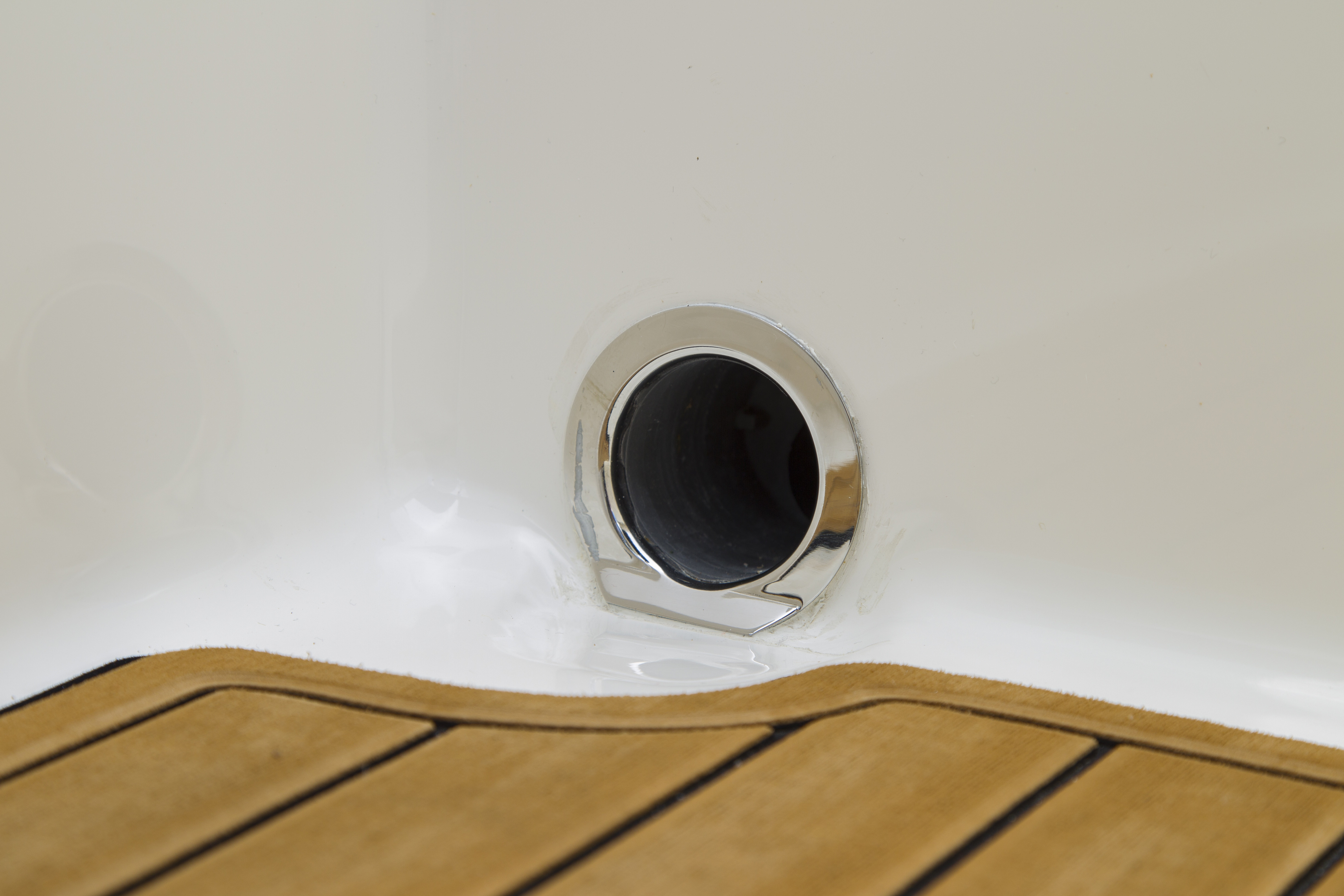 Som i indenbords versionen giver den brede stævn ekstraordinær god plads i front uden at gå på kompromis med de smukke linjer og rå sejlegenskaber. Stort fartpotentiale med de nye og ekstra kraftige Mercury F115, F150 EFI og 175 hk. Båden er indrettet med L-sofa agter som kan omdannes til solseng og samtidig funger som fremadrettet passagersæde. Båden leveres med selvlænssende cockpit som giver nem rengøring og høj sikkerhed specielt lavet til Europæisk brug.