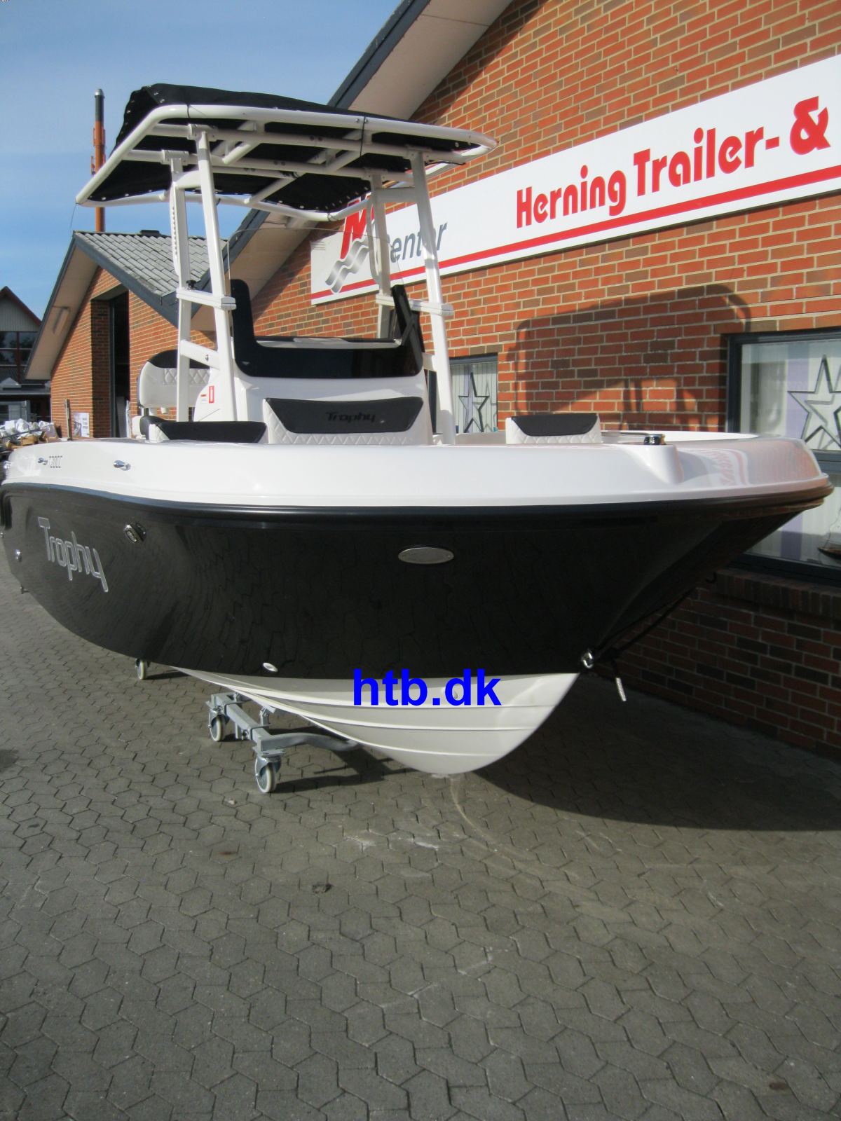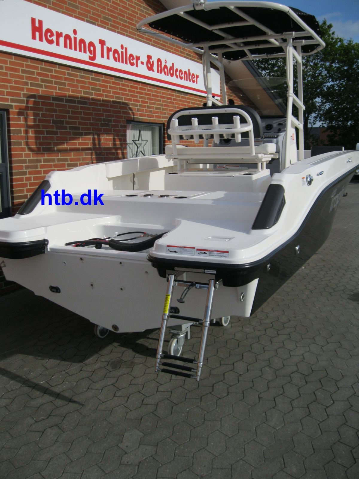 Trophy logo, exterior og interior light pakke m/undervands LED-lys og LED søgelys, foldbar T-top med 4 stk. rørmonterede stangholdere.