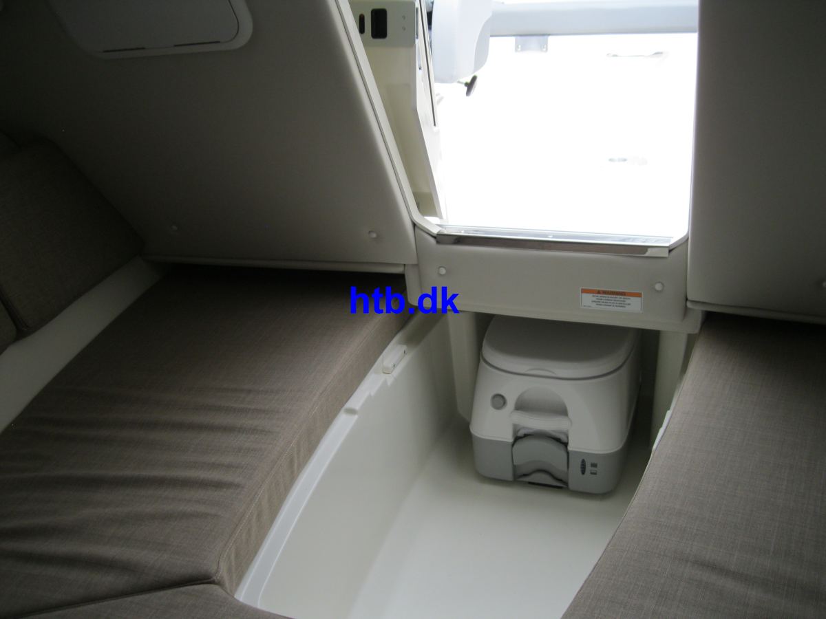 Den store kabine er særdeles rummelig grundet den specielle skrogform med bred front, samtidig med at den dybe v-form bibeholdes. Langsgående vinduer i begge sider give ekstraordinært godt lysindfald. L-sofaen i cockpittet kan omdannes til en solplads samtidig med at den store solplatform agter kan bruges af to personer. Moderne og flot instrumentbord med plads til integreret 7" kortplotter. Båden leveres med selvlænssende cockpit som giver nem rengøring og høj sikkerhed specielt lavet til Europæisk brug.