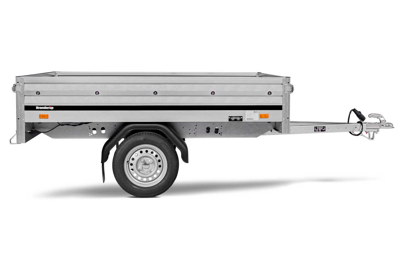 Højtbygget trailer med en aksel og hjulene placeret under ladet, hvilket yder traileren et bredt ladmål samtidigt med at trailerens totalbredde holdes på et minimum. Traileren har nedfældelig front- og bagsmæk som standard.