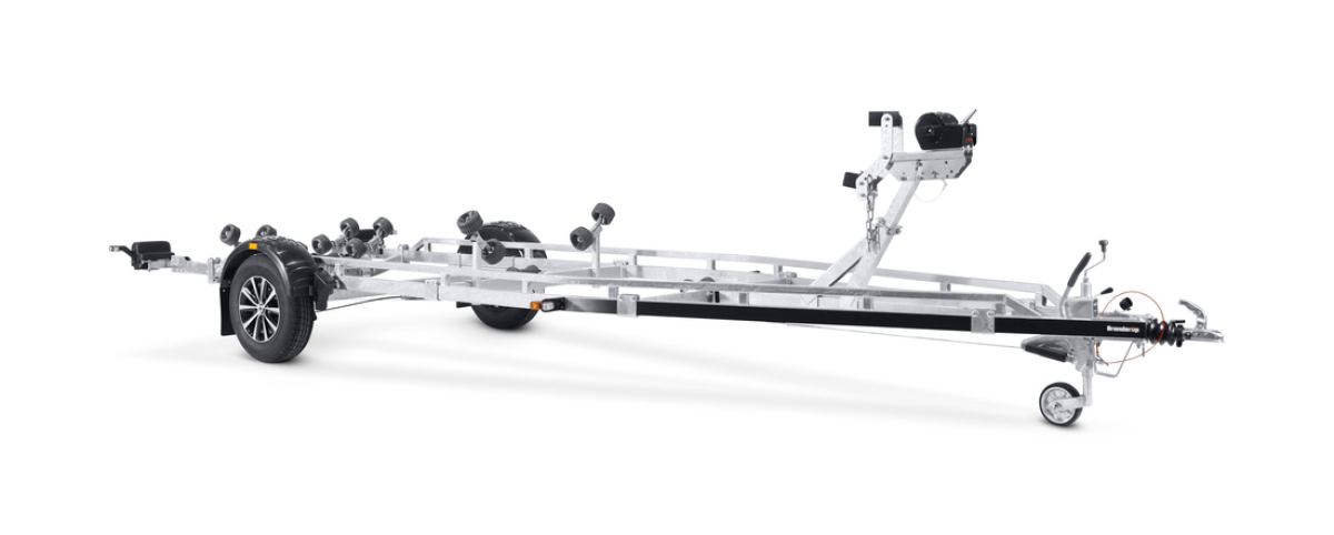Bremset trailer til både op til 22 fod. Udstyret med et svejst og forstærket V-formet chassis. superruller for optimal beskyttelse af båden præcist der, hvor skroget er stærkest. Varmgalvaniseret chassis og vandtætte lejer for længere levetid og maksimal beskyttelse mod rust. Kablerne ligger beskyttet i trailerens chassis. Rustfrie bremsekabler for forlænget levetid. Lukket spil og justerbart spiltårn, som er monteret med en ekstra sikkerhedskæde. Justerbare teleskoplys gør det nemmere at bruge bådtraileren, hvilket giver større fleksibilitet, bekvemmelighed og sikkerhed på vejen. Fuldt vandtæt lampenhed inklusive stik og kabel. Traileren på billedet kan være vist med ekstraudstyr.