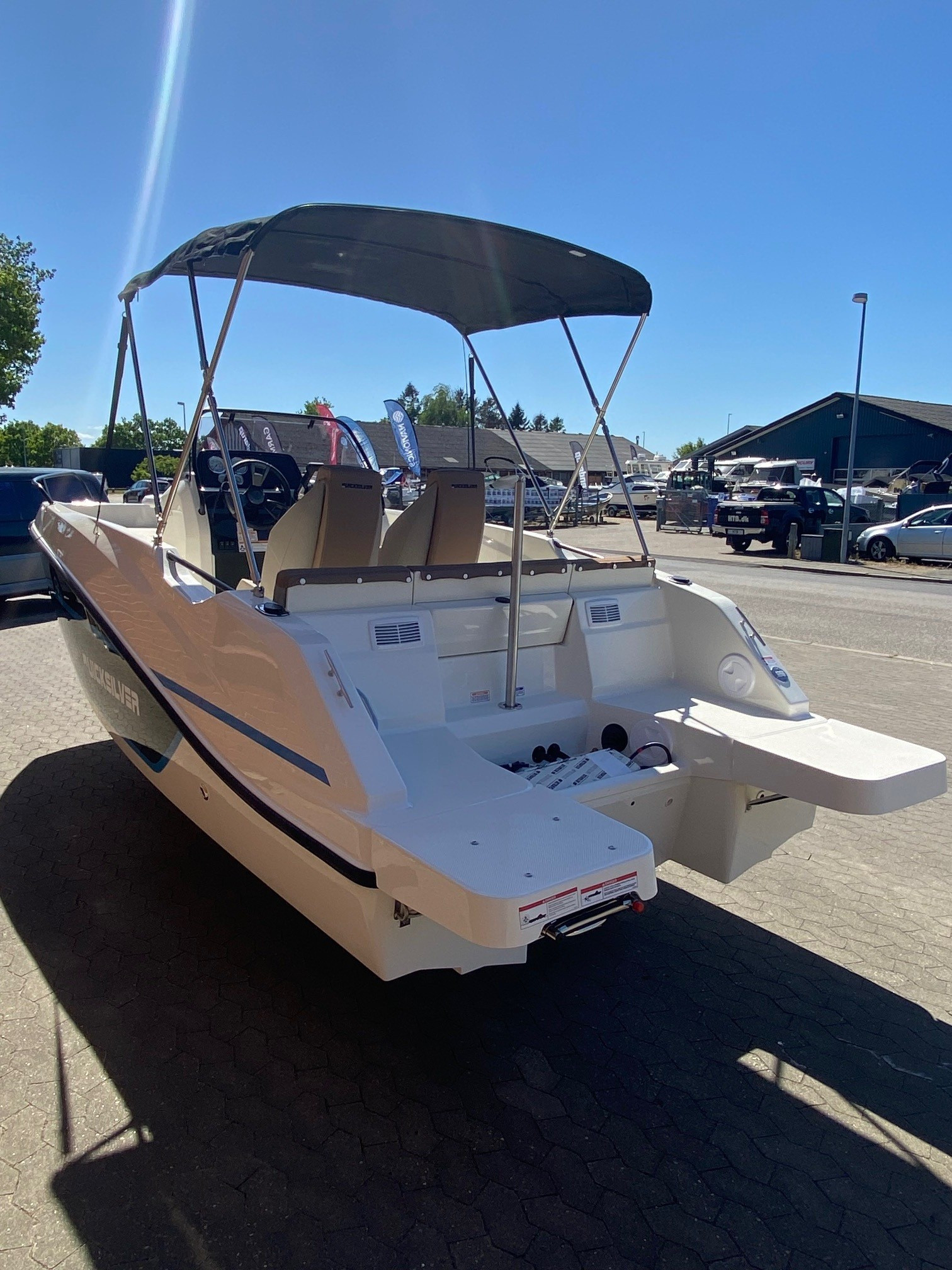Ekstraudstyr: farvet gelcoat - mørkgrå, badeplatformudvidelse, styrepult og sædeovertræk, SmartEdition pakke: bimini, vandskistang/øje, stereoanlæg Fusion m/2 stk. højtalere, stævnkit m/solindsats og hynder i stævn samt bord.