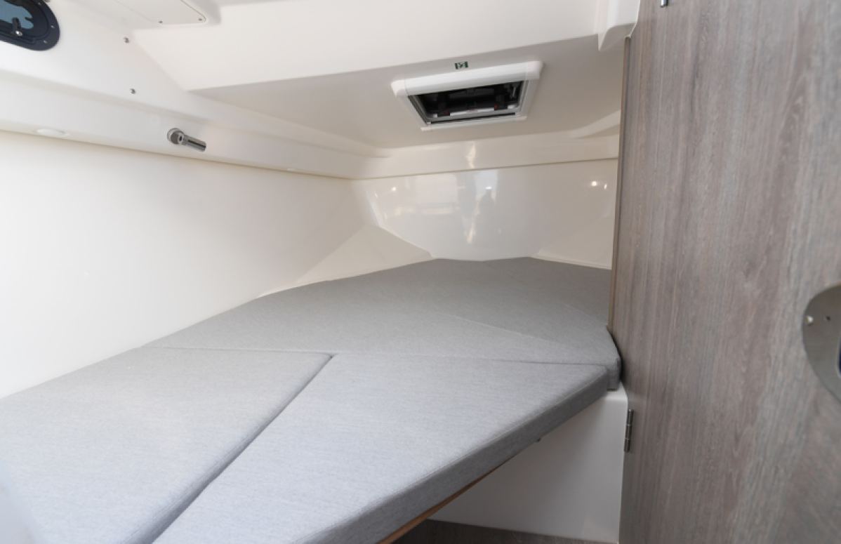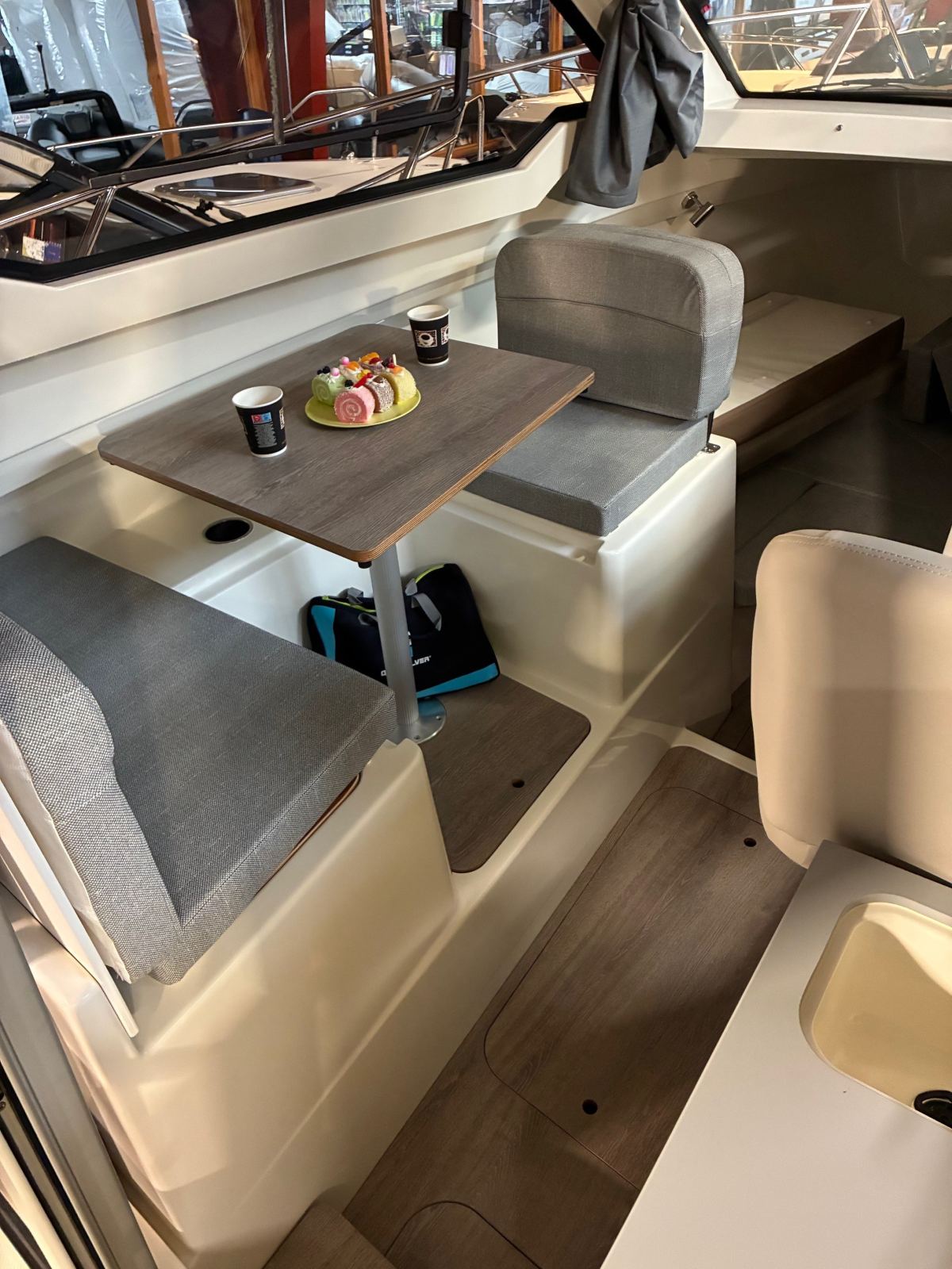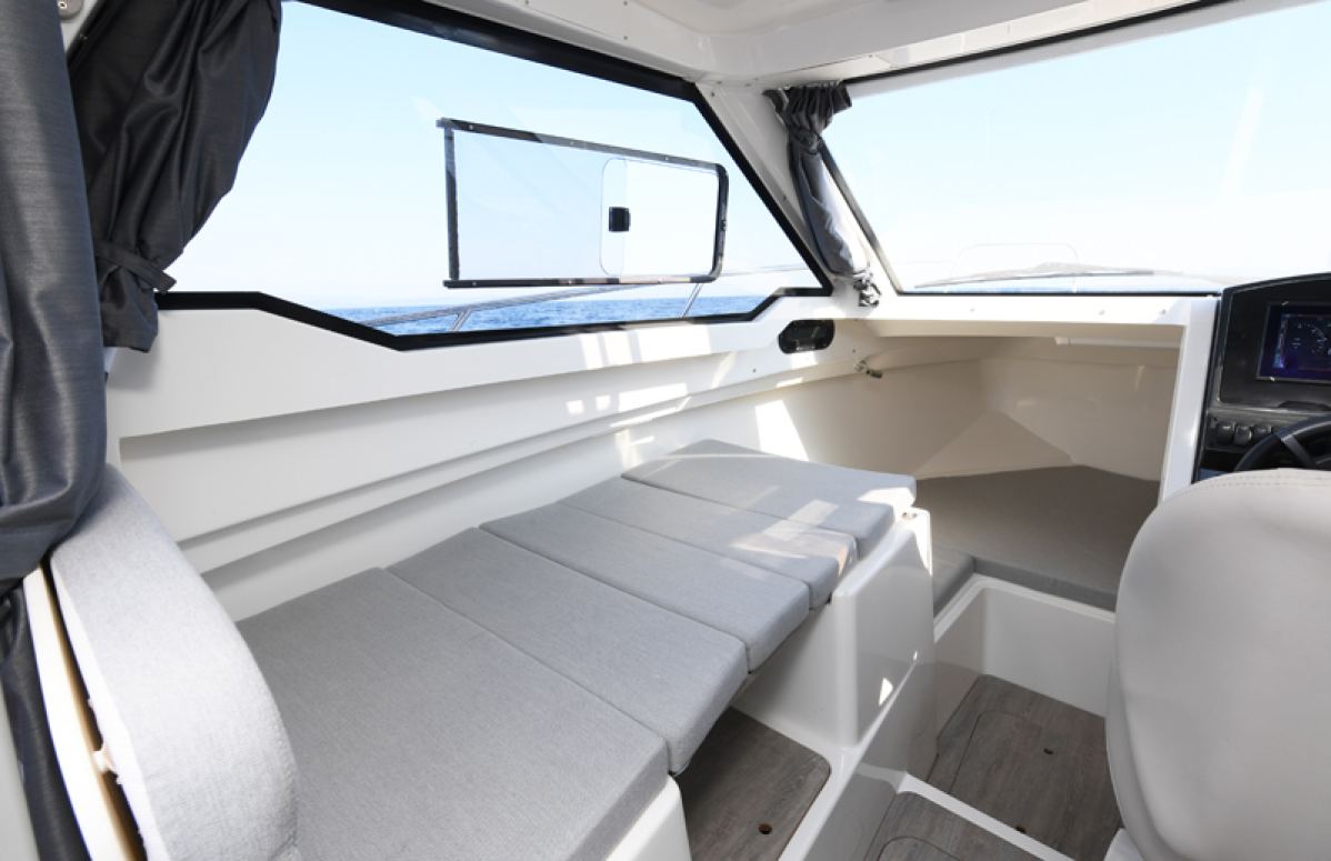 Båden er fuld af udstyr: badestige, navigationslys, selvlænsende cockpit, stangholdere, badeplatform, cockpit hynder, cockpit bord, cockpitbruser, L-sofa agter, opbevaringsplads under sæder, pilotsæde, dinette m/hynde, dæksluge, vask, lænsepumpe, dobbelt batterisystem, brandslukker, hydraulisk styrring, styrbord vinduesvisker og sprinkler m.m.