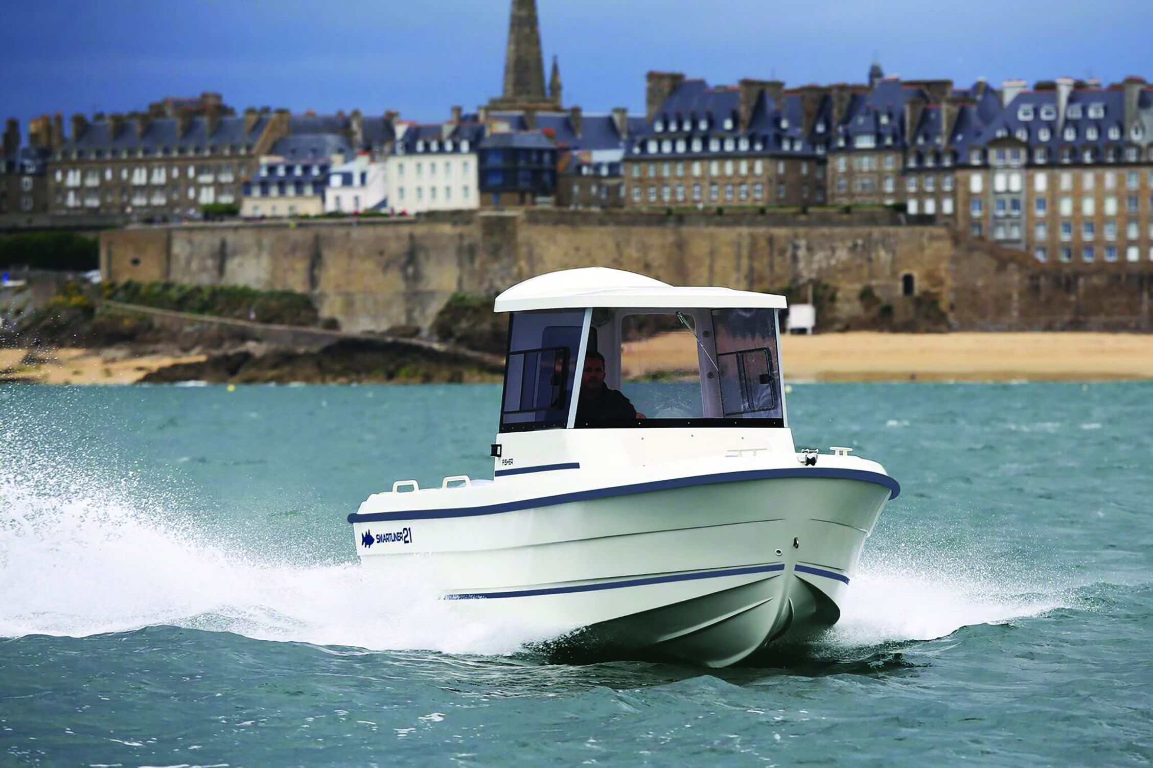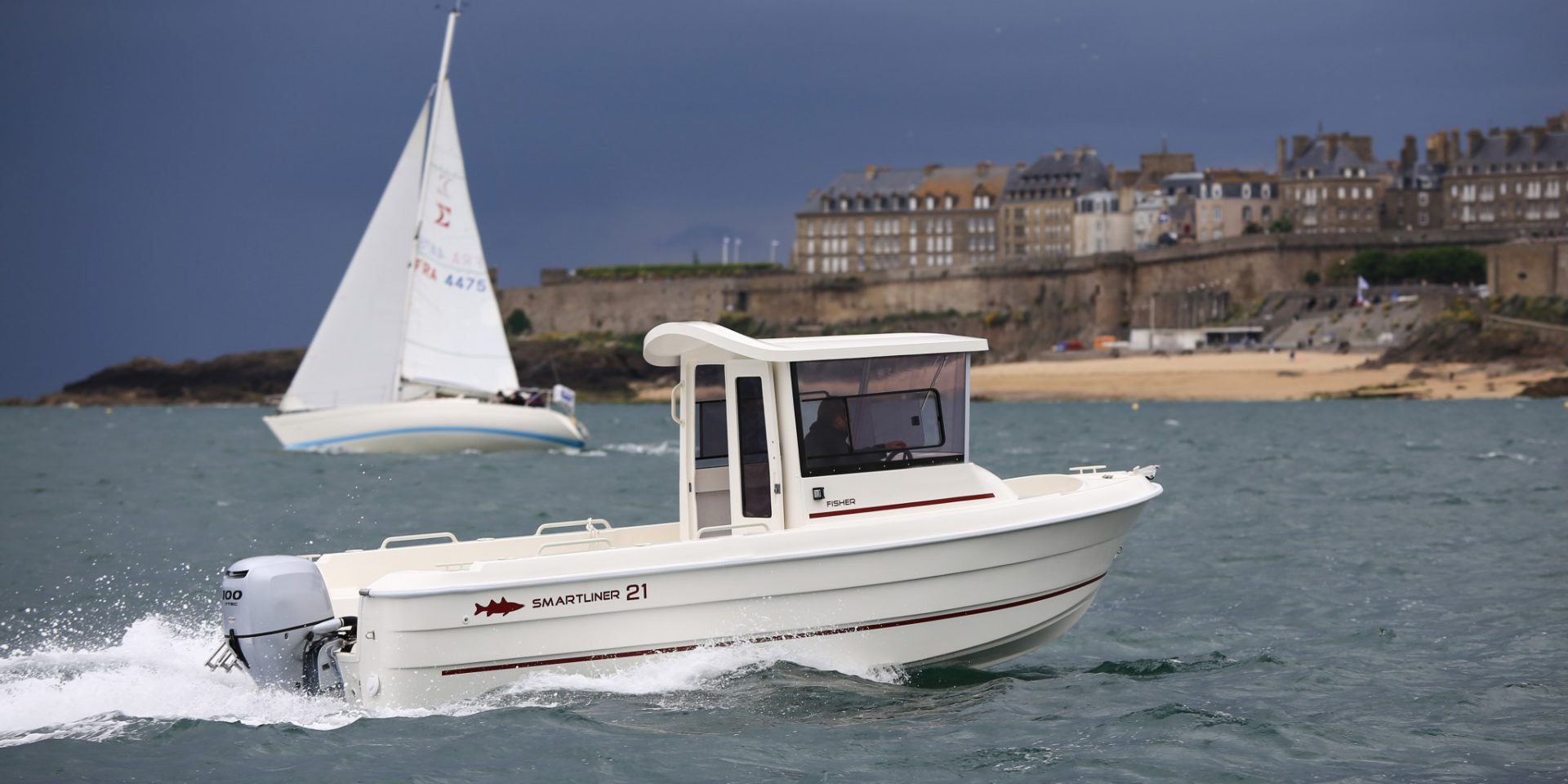 Fisher serien har assymetrisk kabine, som giver god adgang til fordækket og samtidig plads i kabinen. Pilotsæde og nedfældelige sæder giver siddeplads til tre personer, og i opklappet tilstand er der ekstra plads.