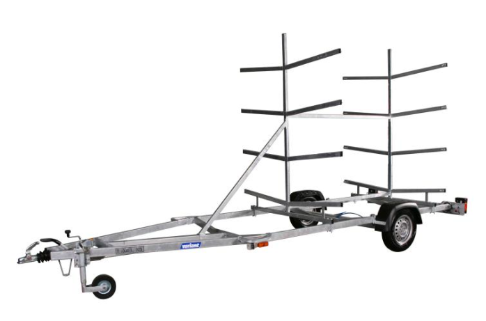 Variant kano/kajak trailer fås med og uden bremser og er med justerbar og aftagelig lygtebom samt vandtætte hjullejer. Den bremsede model har rustfri bremsekabler.