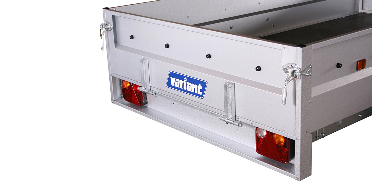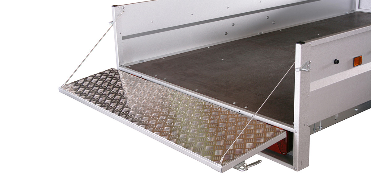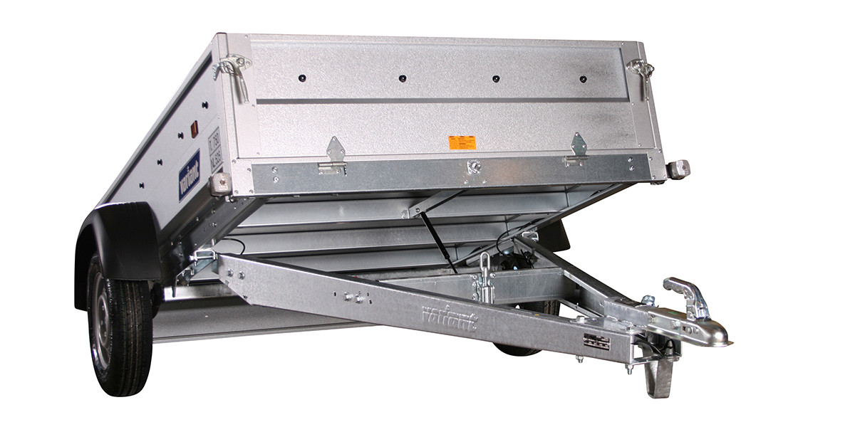 En kraftig trailer med stort potentiale. Vognen har oplukkelig for- og bagsmæk, tip med støddæmper og ind- og udvendige surringsmuligheder som standard. Den er med kraftige hængsler og alu-dørk plade på bagsmækken som gør den velegnet til kørsel med små maskiner og plæneklippere.